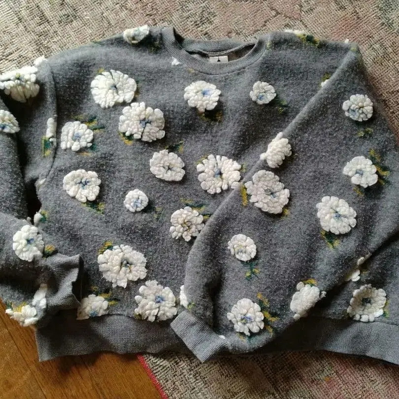 niko and - 입체 꽃무늬 긴팔 풀오버 그레이
