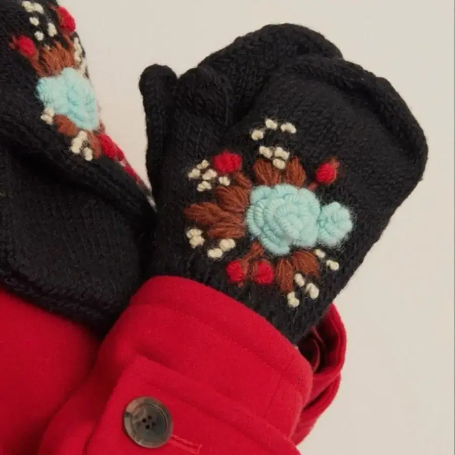 완판템 장갑 [ WEB 별주 ] 네팔 핸드 니트 자수 미튼 블랙