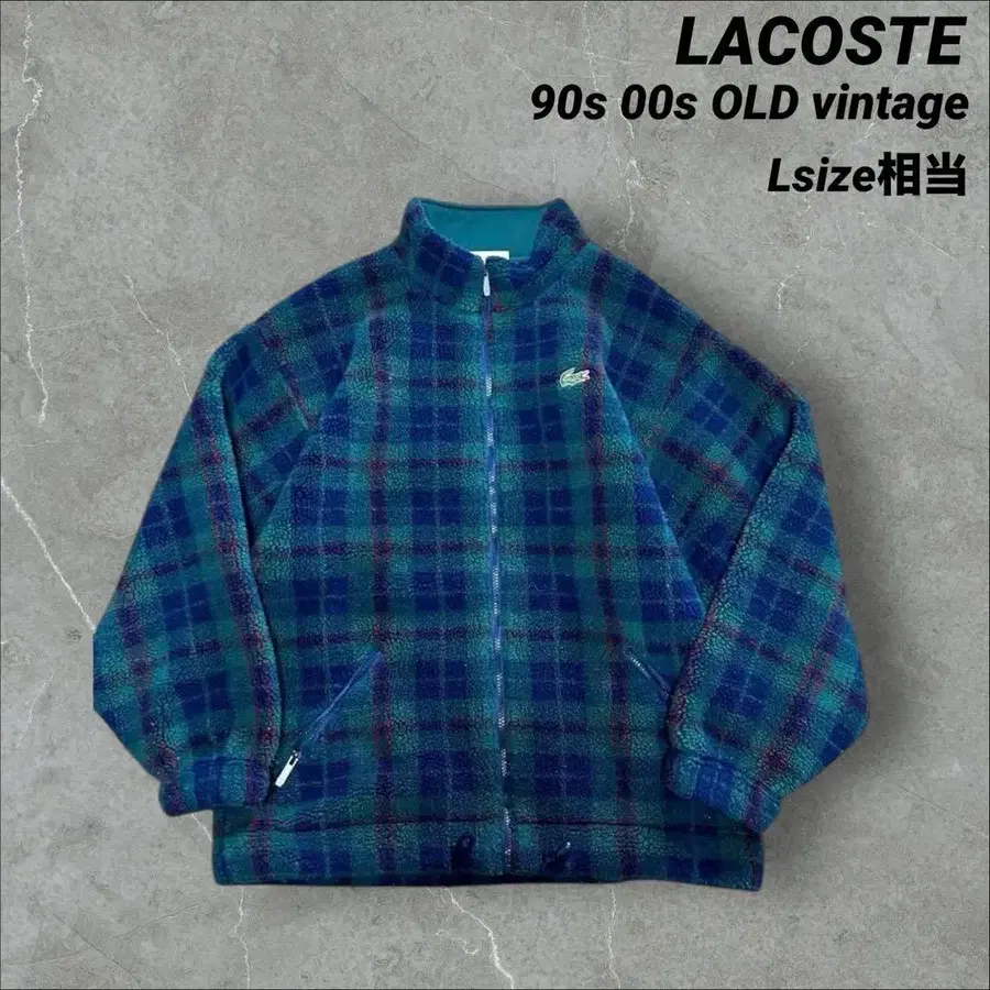 [초레어] LACOSTE 악어 자수 타탄 체크 두꺼운 플리스 자켓