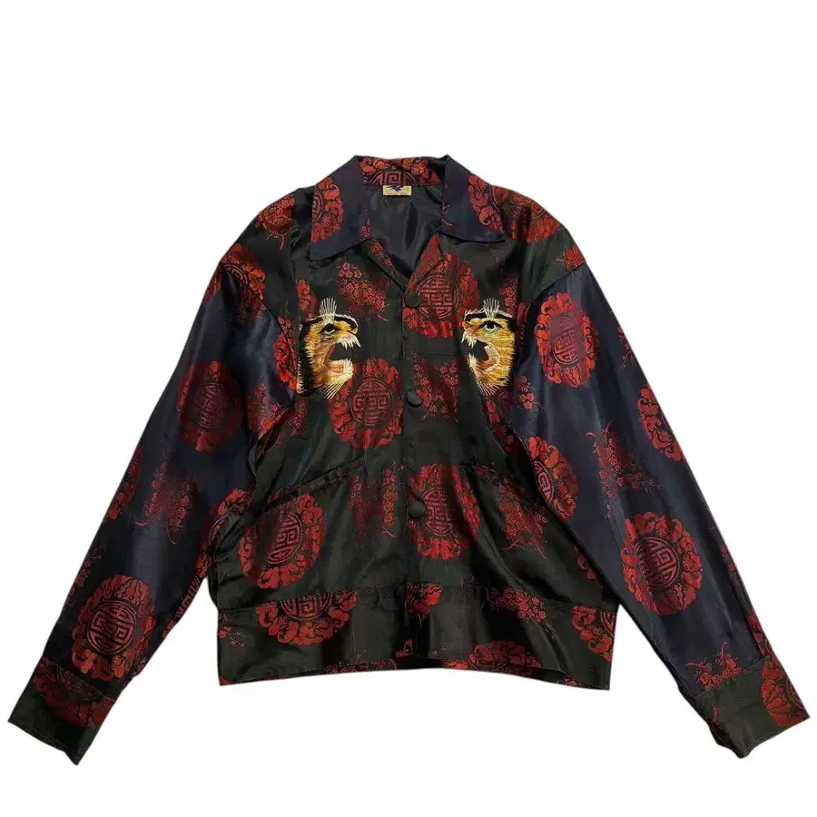 50s KOREA 새틴 스카 자켓 블랙 빨간색 타이거 페이스 호랑이