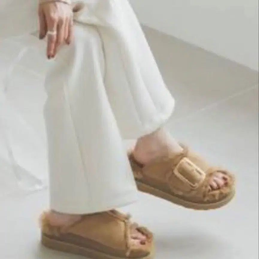 MOHI 퍼 포함 베이지 컴포트 샌들