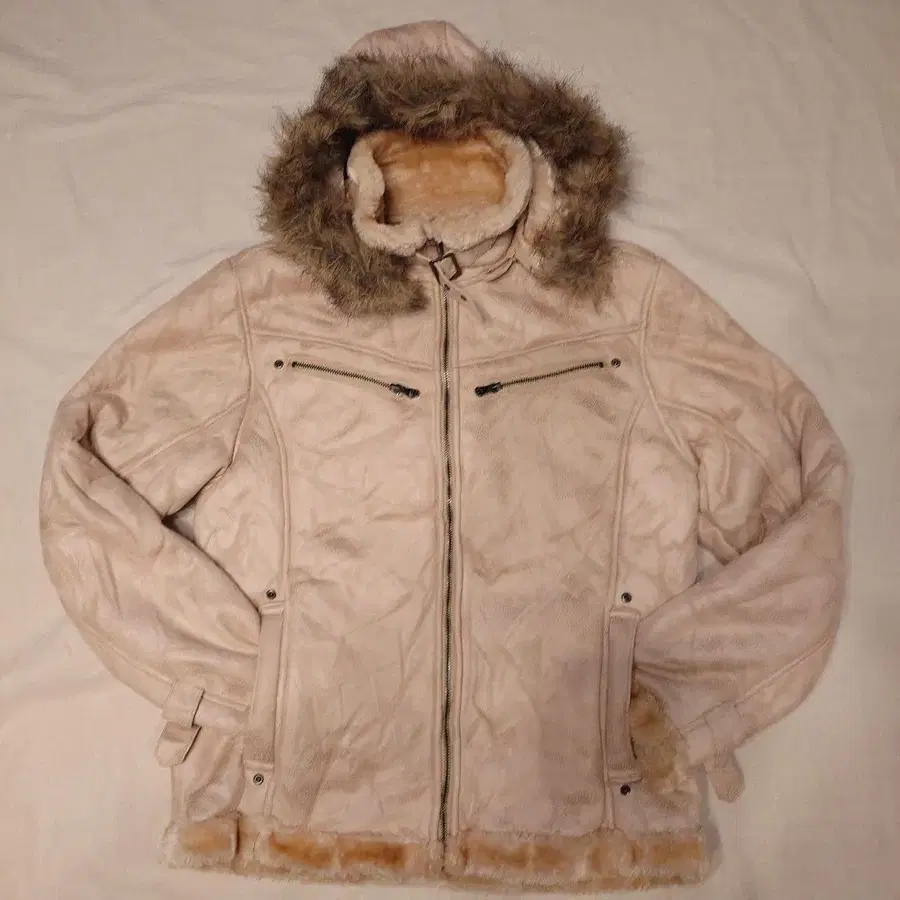 후드 부착 퍼 부착 자켓 연한 베이지
