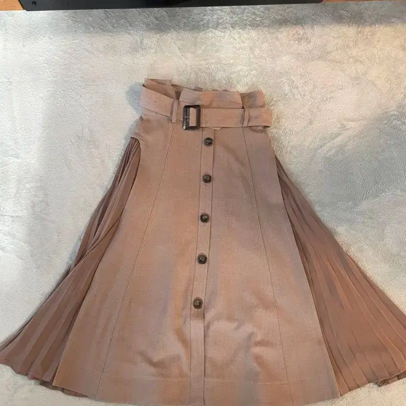 새상품급 Mystrada 베이지 트렌치풍 플레어 스커트 벨트 포함 M