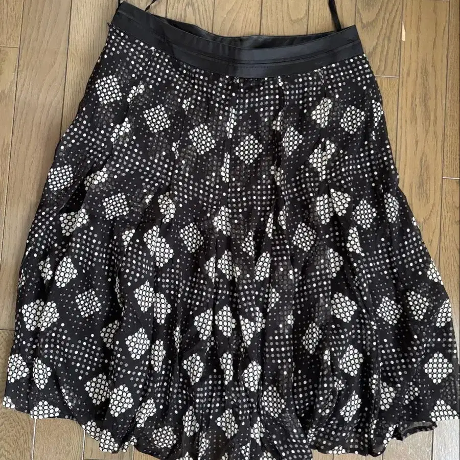 23구 플레어 스커트 블랙과 화이트 도트 무늬 사이즈 44