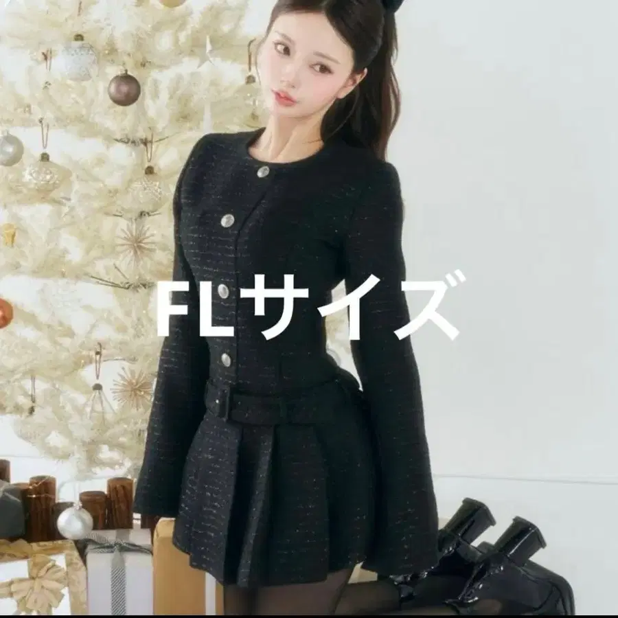 택 포함 새상품 다리치 박스 플리츠 트위드 미니 원피스 블랙