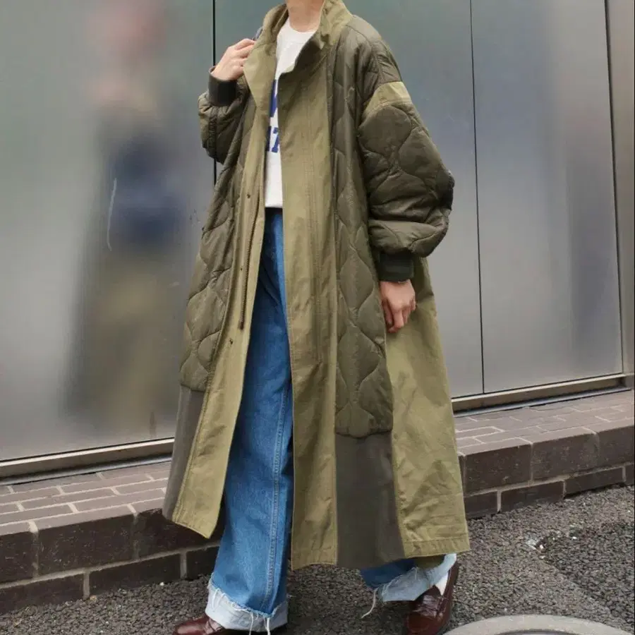 [ etsinta/에신타 ] 절개 맥시 밀리터리 코트 카키