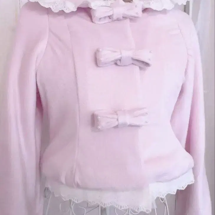 핸드메이드 프릴 장식 핑크 숏코트