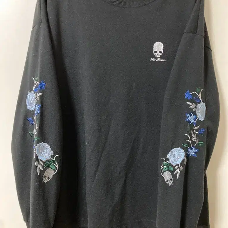 자수 긴팔 해골 해골 블랙 블랙 블루 장미 파랑 M ado 왼쪽 의류