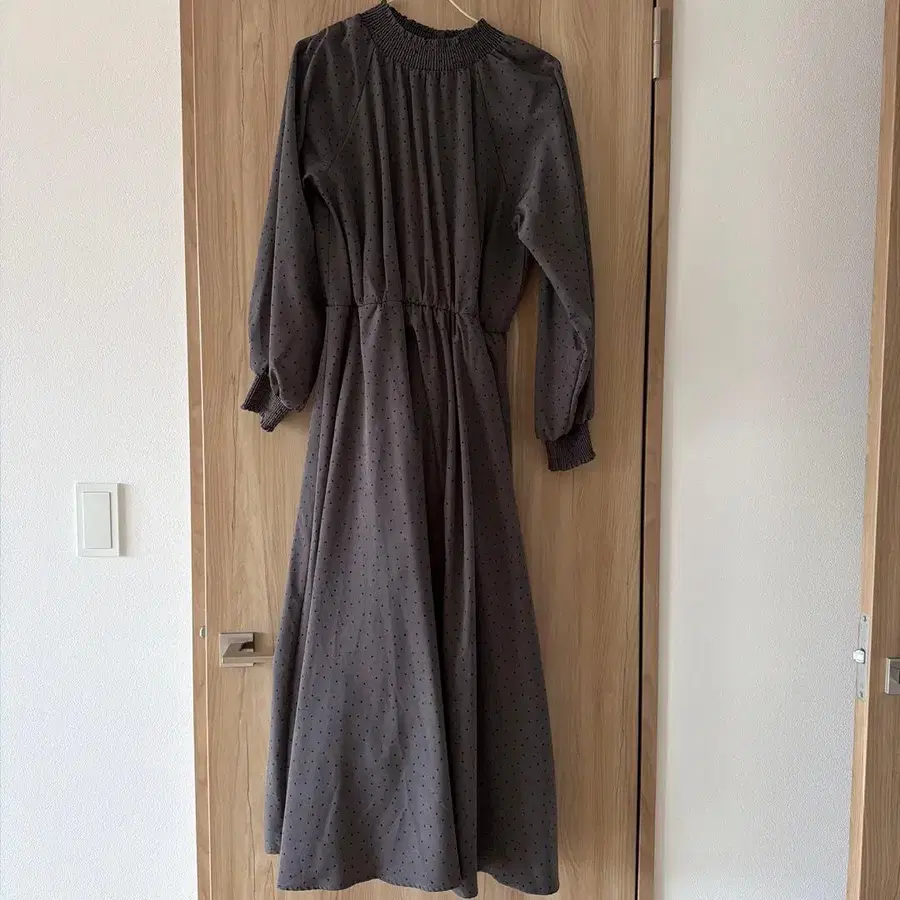 BEAMS HEART 도트 무늬 그레이 긴팔 원피스