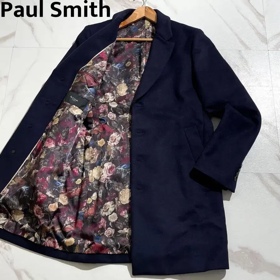 새상품급 폴스미스 꽃무늬 체스터 코트 롱 기장 네이비 아우터 203
