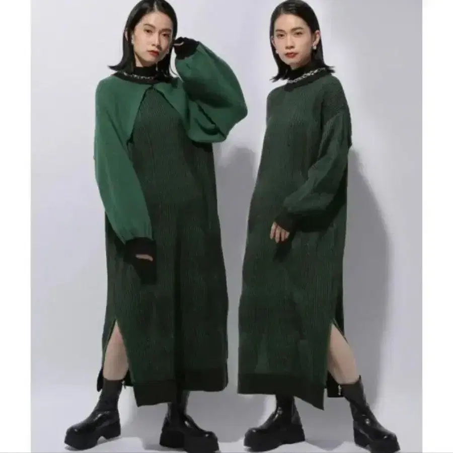HARE 니트 롱 원피스 숏 가디건 2세트 그린 Free