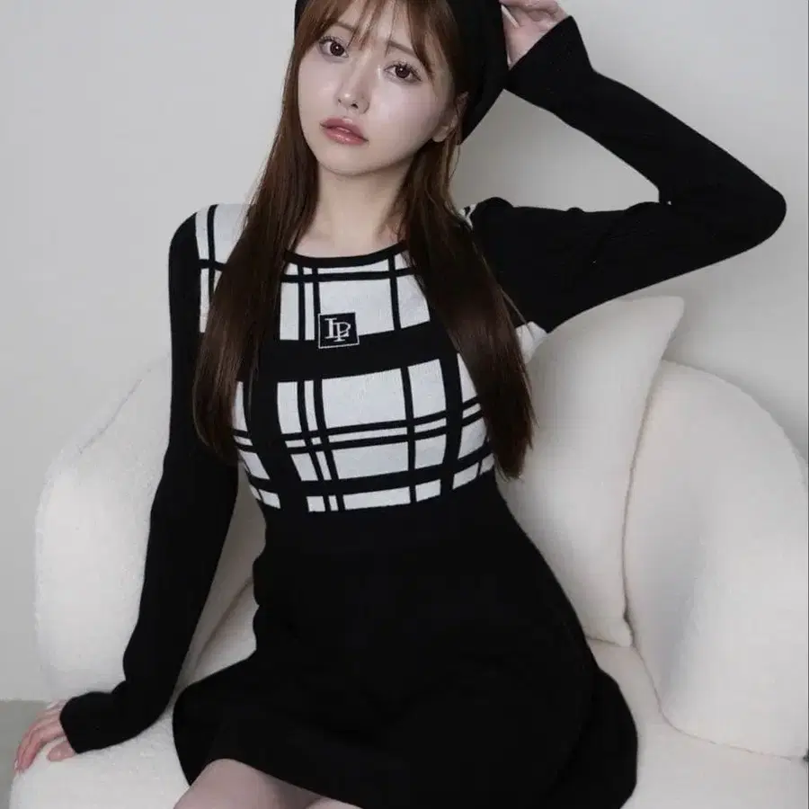 LIP SERVICE 니트 원피스 체크 플레어 니트 원피스 블랙