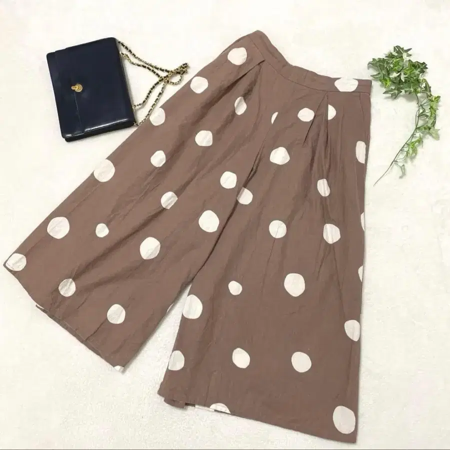 사만사 모스모스 와이드 팬츠 브라운 도트 린넨 코튼