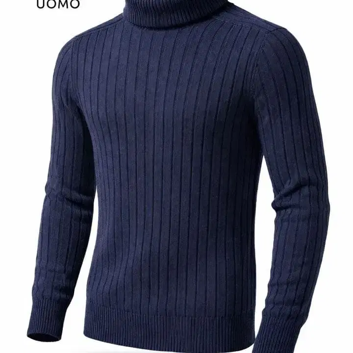 EPOCA UOMO 리브 터틀넥 니트 네이비 사이즈 46