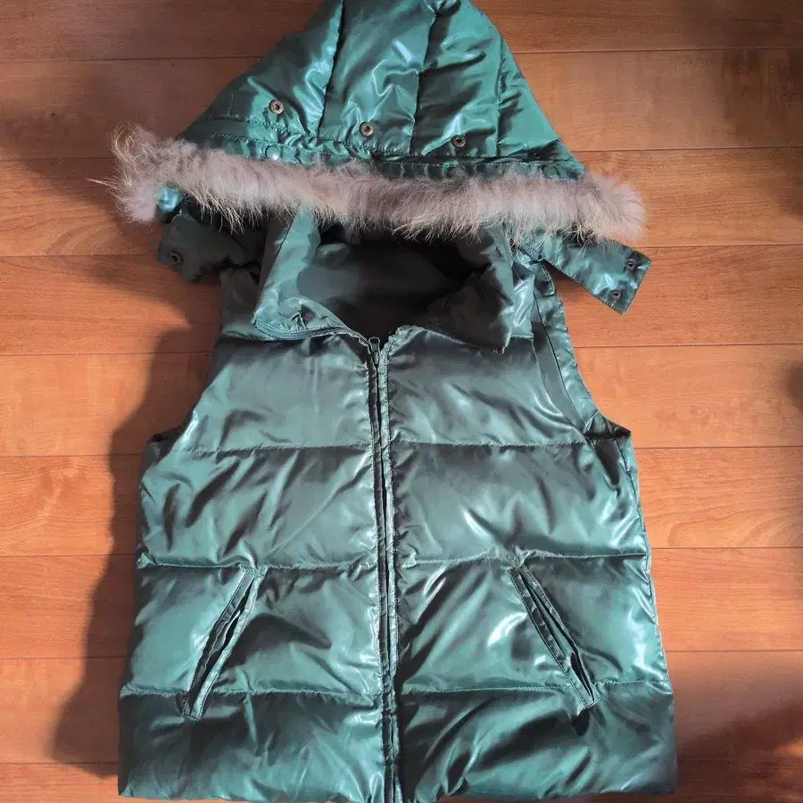 그린 다운 베스트 퍼 후드 포함