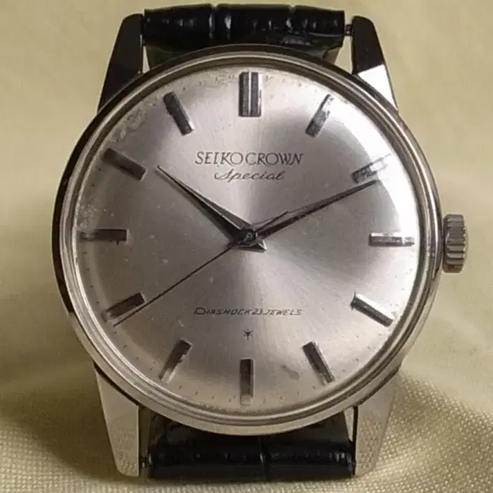 세이코 크라운 스페셜 수동 와인딩 시계입니다. 기계는 분해 소독 완료했습니다. 현재 좋은 상태로 작동 중입니다. 일차는 타임그래퍼로 평평하게 놓았을 때 +15초 전후로 측정되며, 측정 정확도도 양호합니다. 빈티지 시계로서는 충분한 정확도입니다. 시계 외장 케이스는 클리닝 완료했습니다. 다이얼 9시~12시 위치에 얼룩 흔적이 있습니다. 방풍 유리는 눈에 띄는 얼룩이나 약간의 흠집 없이 깨끗한 상태입니다. 이미지로 확인하시고 납득하신 후 구매해 주십시오.