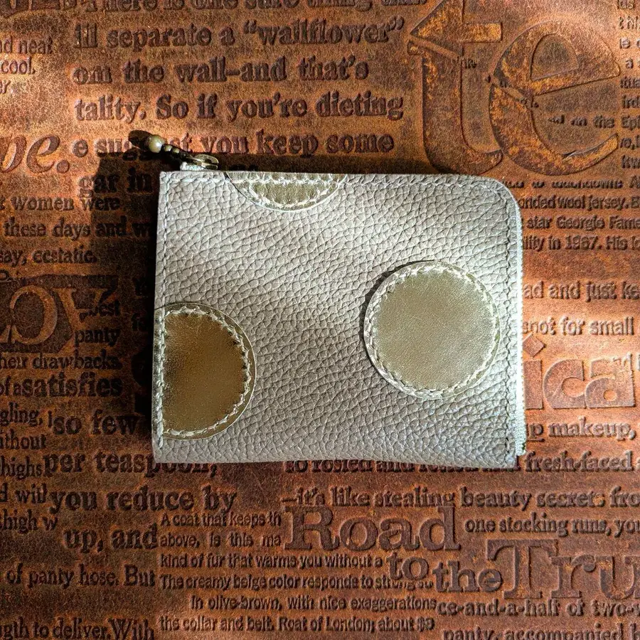 꼼꼼한 손바느질*그레이지와 샴페인 골드 도트 천연 가죽 컴팩트 지갑*L자