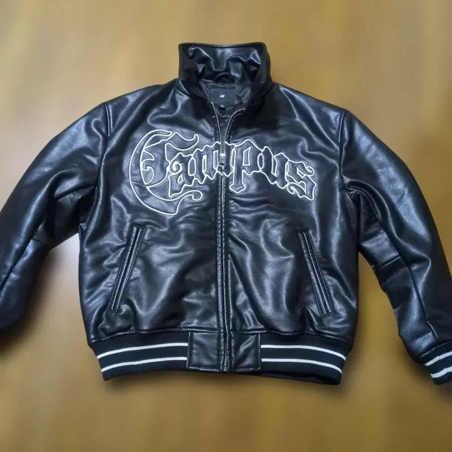 H&M 캠퍼스 로고 블랙 바시티 자켓 US M