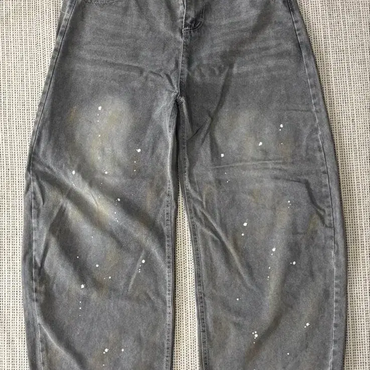 그레이 페인트 가공 와이드 팬츠 허리 82cm