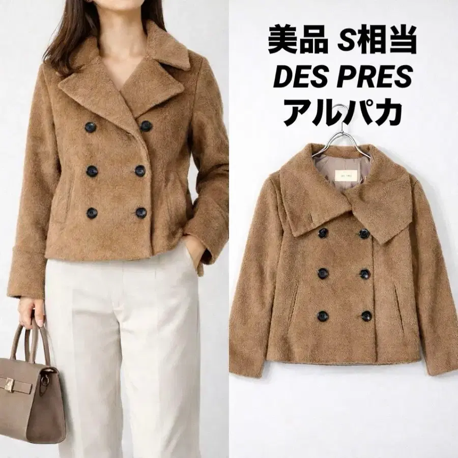 자동 번역되었어요. 원문보기[ 새상품급 ] DES PRÉS 데 プレ TOMORROWLAND 숏코트 알파카 혼방 더블 버튼 카멜 브라운 사이즈 1 ( S 상당 ) 일본제 샤기