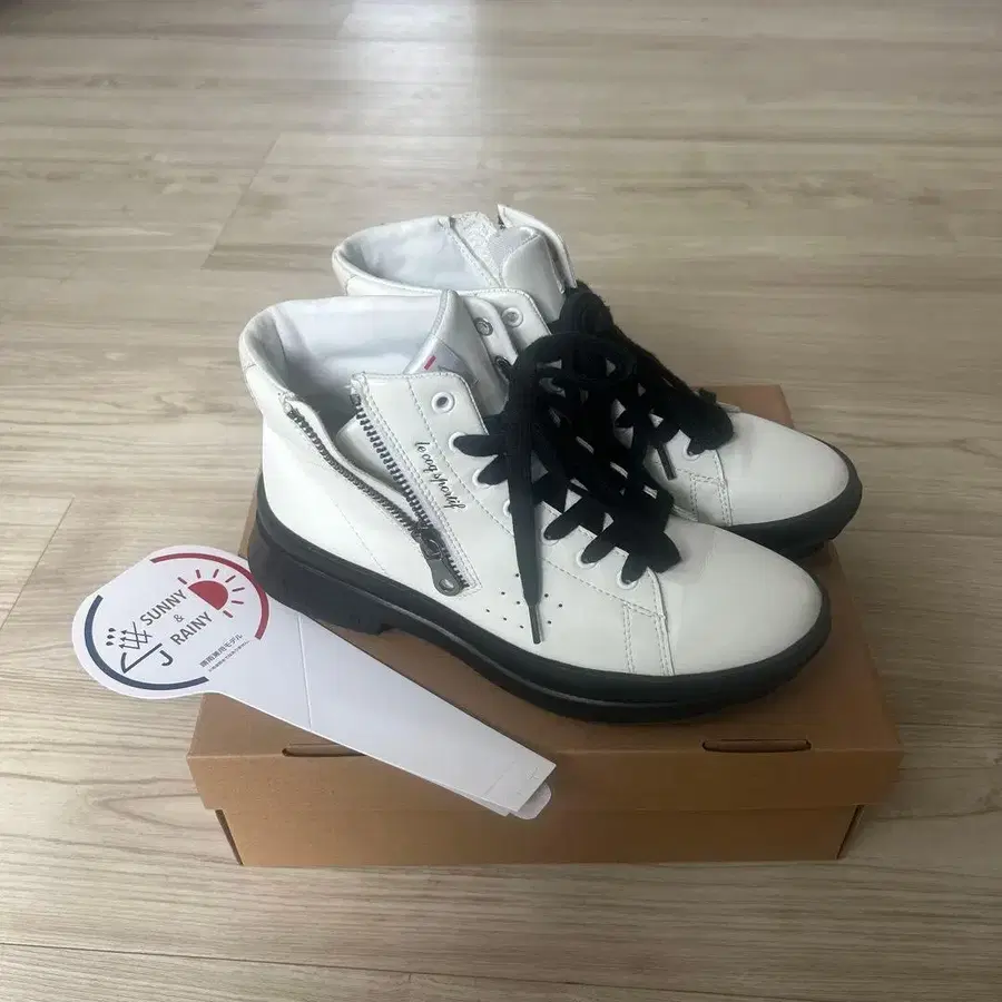 화이트 가죽 하이컷 스니커즈 우천 겸용 모델