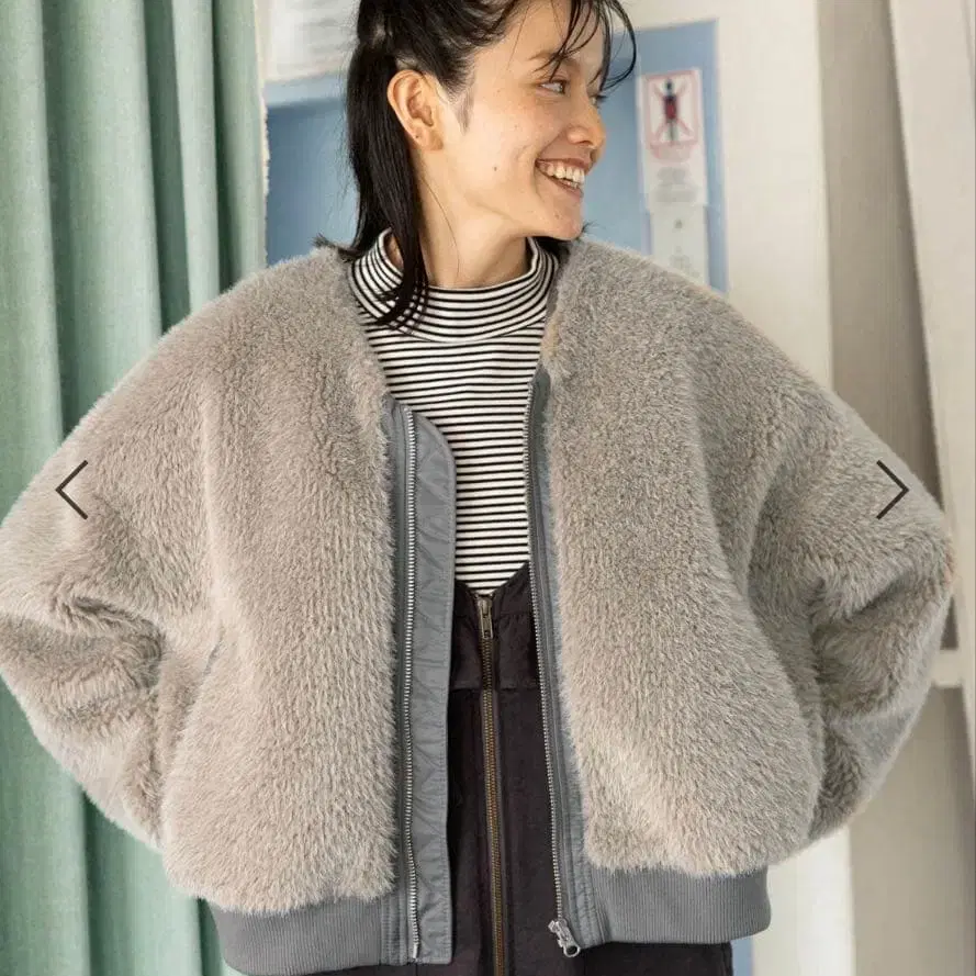 niko and - 인조 모피 블루종 그레이
