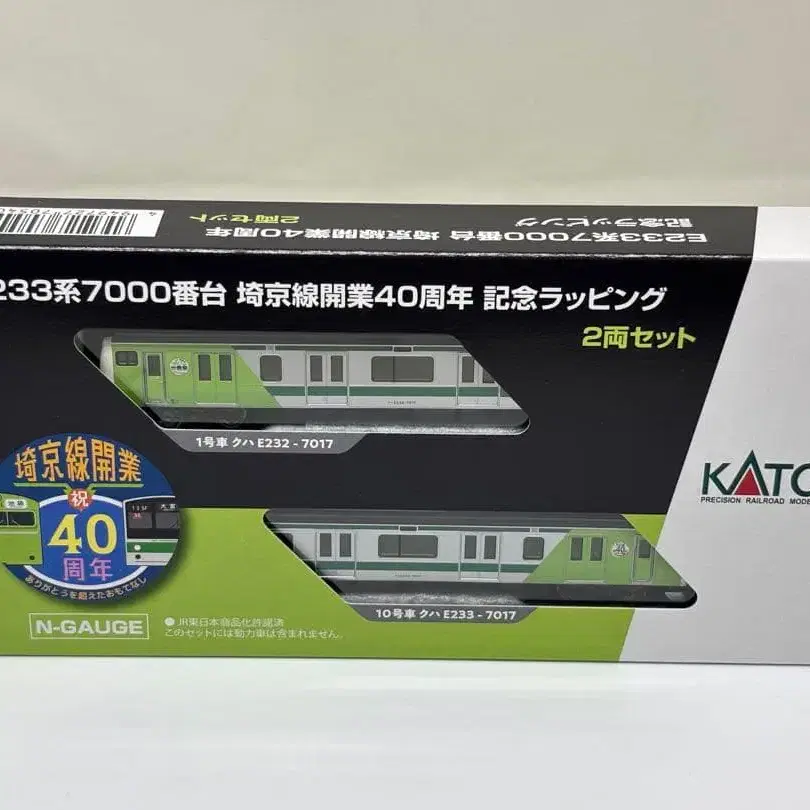 이것은 KATO제 N 게이지 E233계 7000번대 [사이쿄선 개업 40주년 기념 랩핑] 선두차 2량 세트 (하에117편성) 입니다.