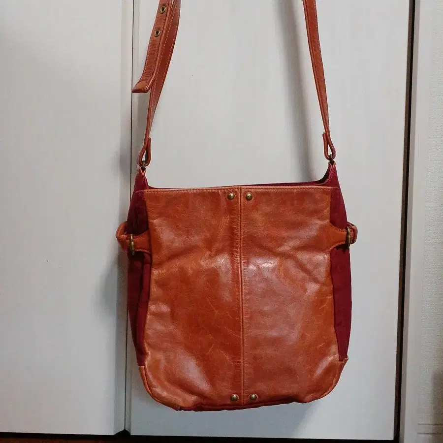 오렌지색 가죽과 레드 캠퍼스 숄더백