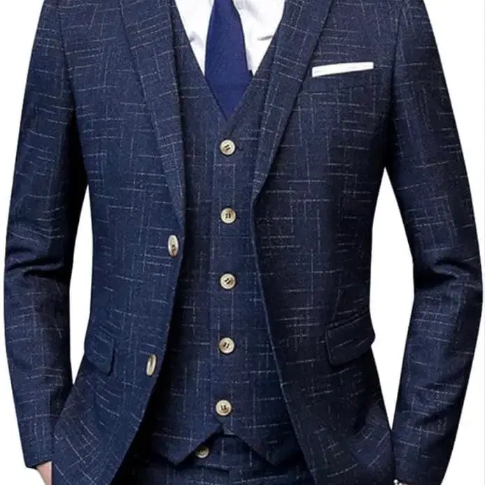 수트 3종 남성용 네이비 체크