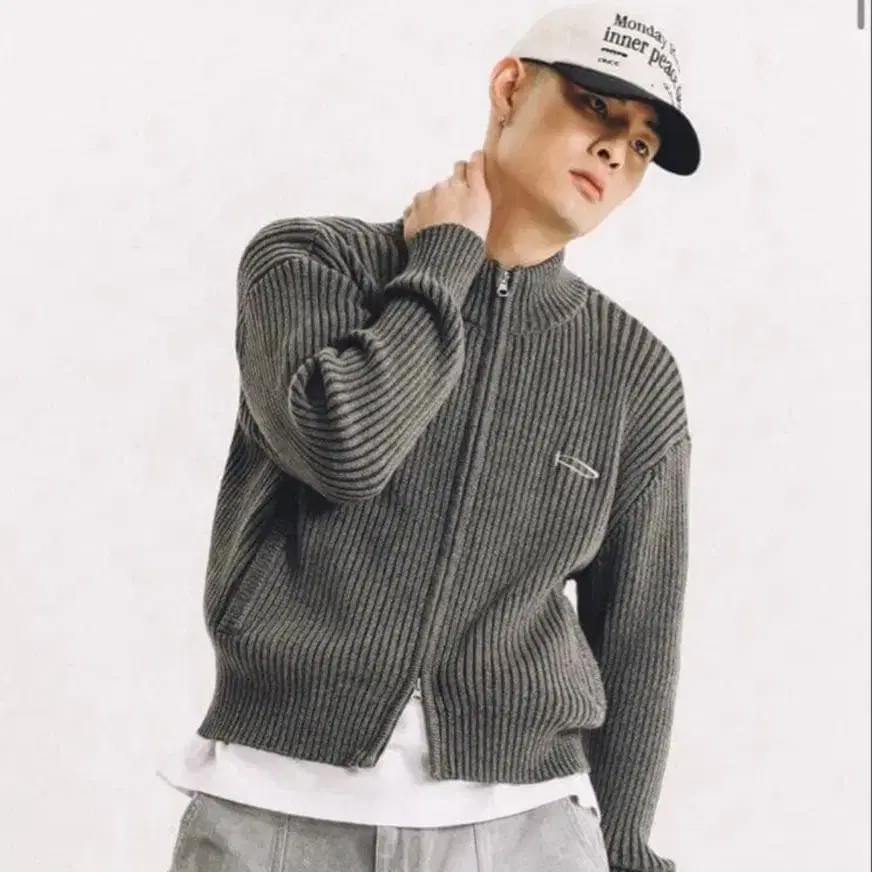 집업 가디건 P-ACTIVE 투톤 립 니트