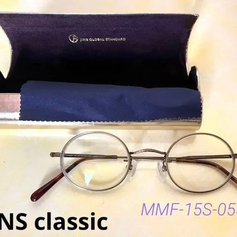 앤티크풍의 골드와 브라운 콤비네이션이 특징인 JINS 안경, 스타일리시한 디자인입니다. 케이스는 부속품이 아니지만, 넣어 발송합니다.