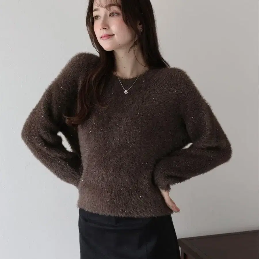 BLUEEAST 블루이스트 스팽글 라메 샤기 니트 브라운
