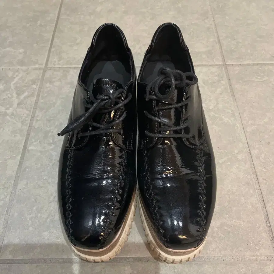 CAWAII 블랙 에나멜 통굽 캐주얼 슈즈