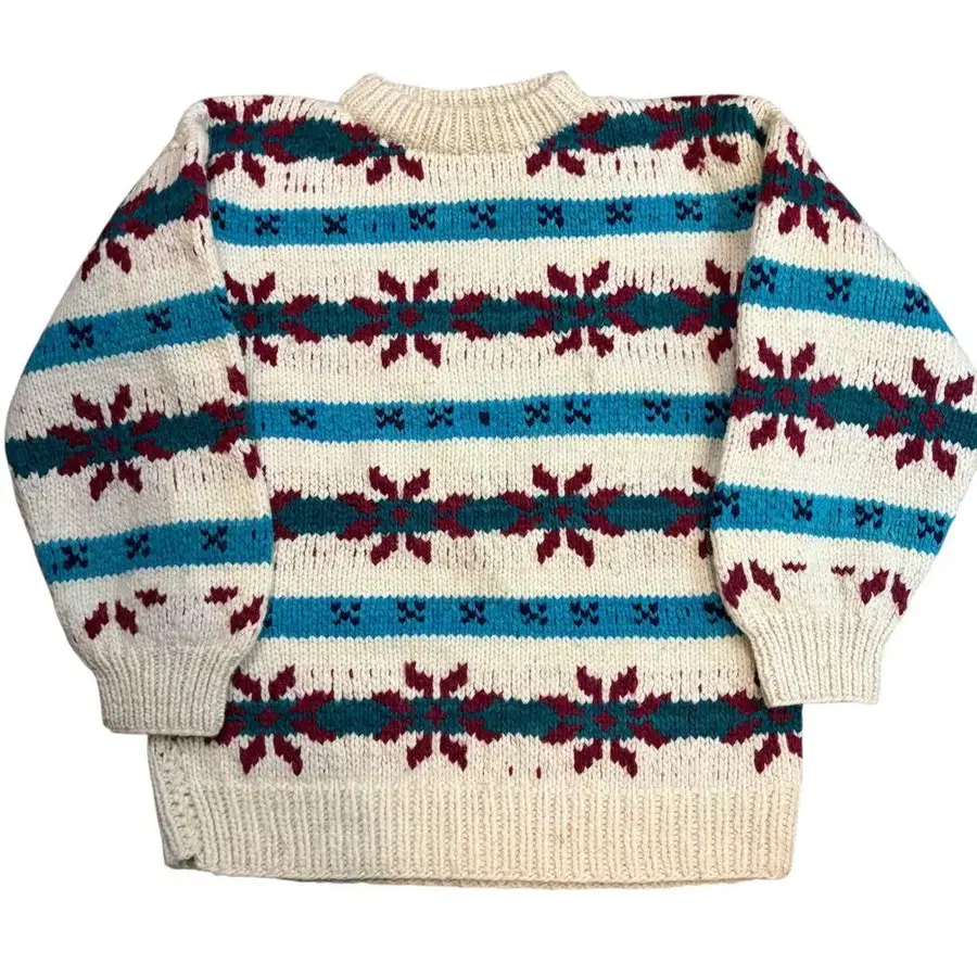 빈티지 80s 에콰도르 스웨터 니트 귀여운 눈꽃 패턴 꽃무늬 구제 의류