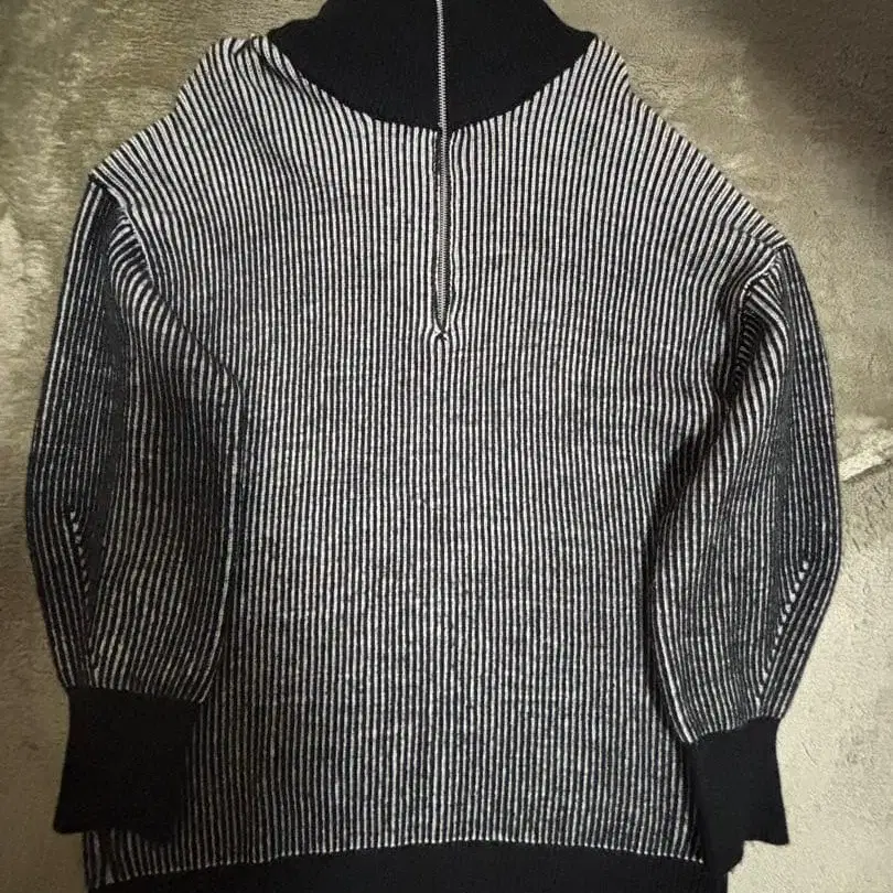 스트라이프 디자인 긴팔 니트 스웨터 사이즈 F