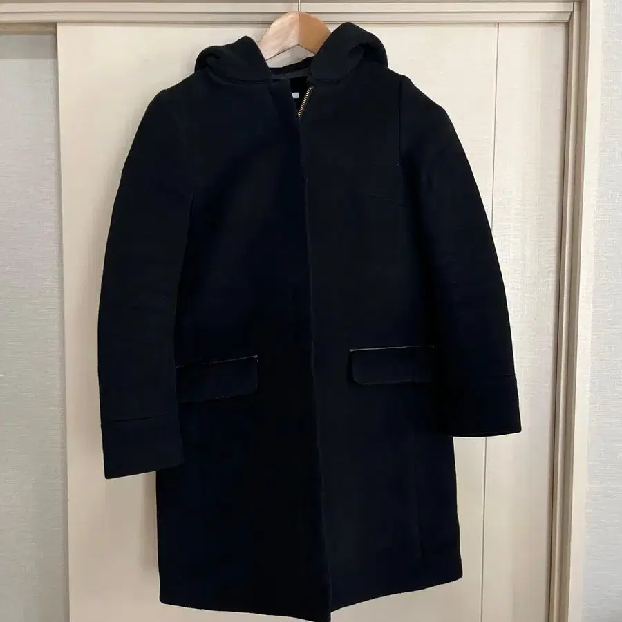 후드가 부착되어 있지만, 깔끔한 실루엣이 매력적인 아우터입니다.