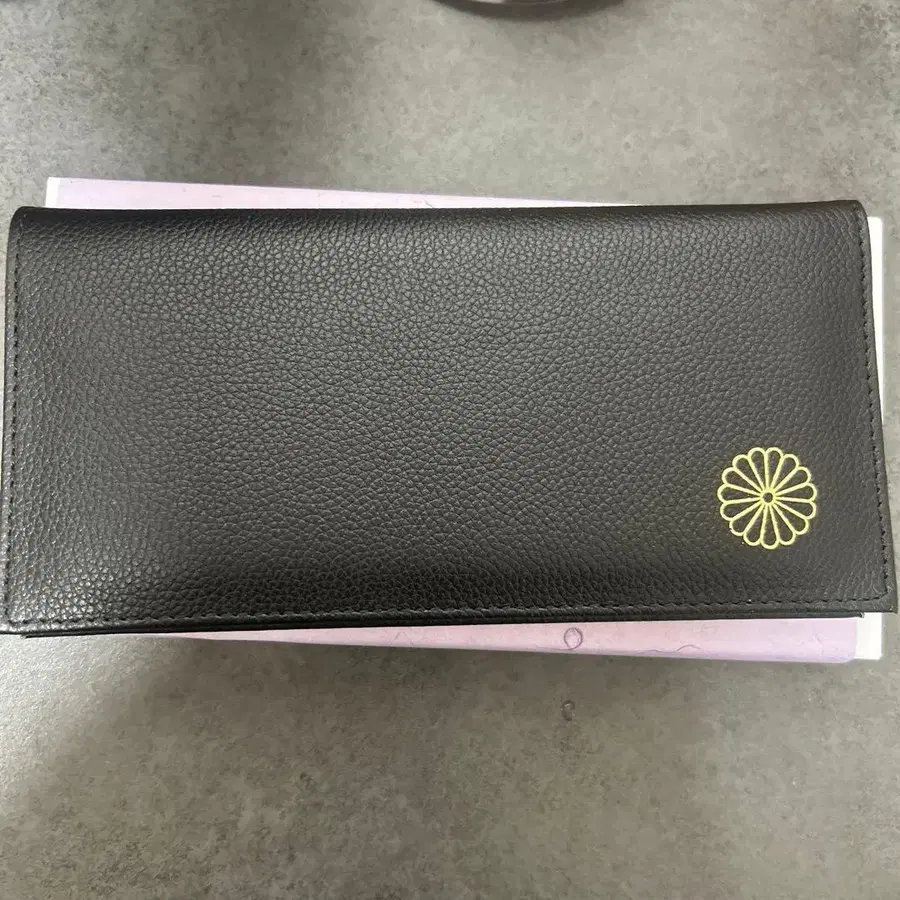 황거 장지갑 블랙 국화 문양 골드 컬러