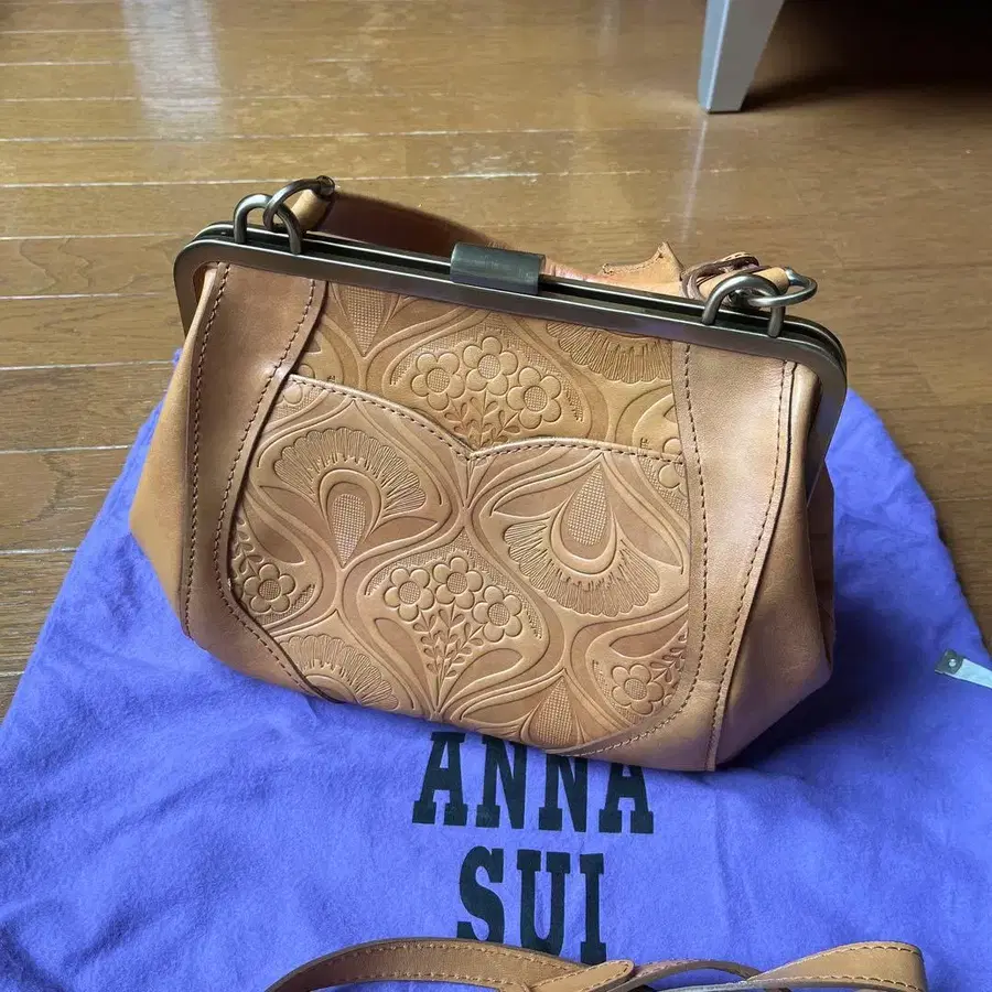 안나수이 엠보싱 가공 베이지 가죽 핸드백