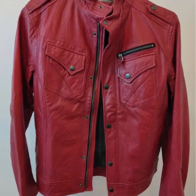 새상품 미셸 클라인 가죽 자켓 와인 레드 천연 가죽 M 사이즈 상당