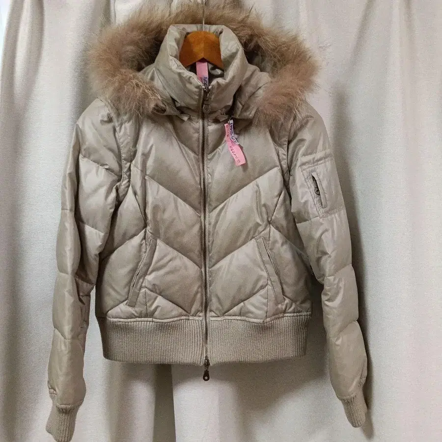[ Re.C ] 9M 퍼 달린 카키 베이지 다운 자켓 점퍼 베스트