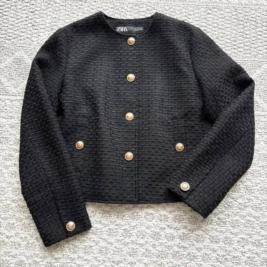 ZARA 노카라 트위드 자켓 블랙 골드 버튼