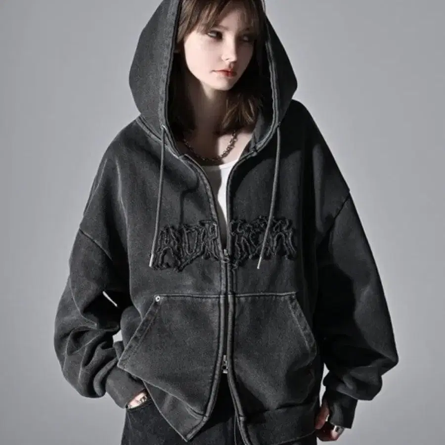 ADRER 헤비웨이트 로고 세미숏 빈티지 더블 지퍼 후드티