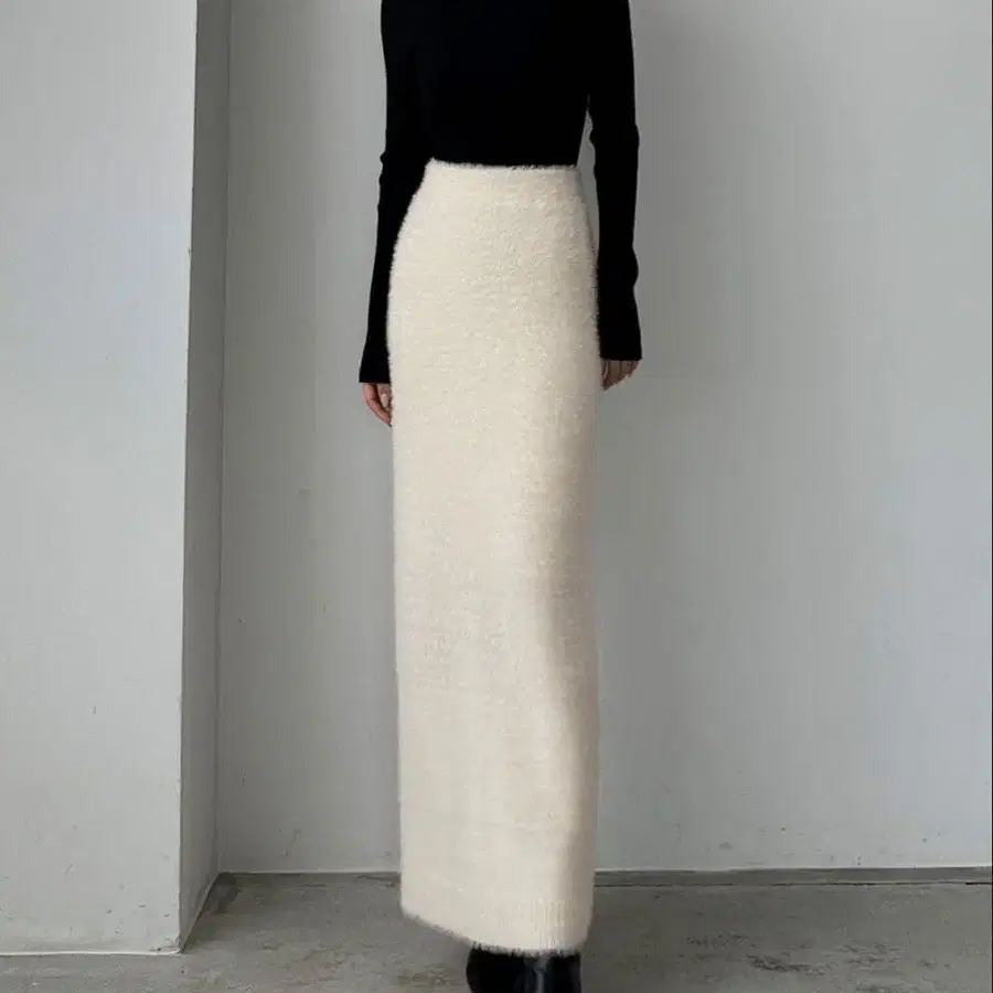샤기 니트 펜슬 스커트 S