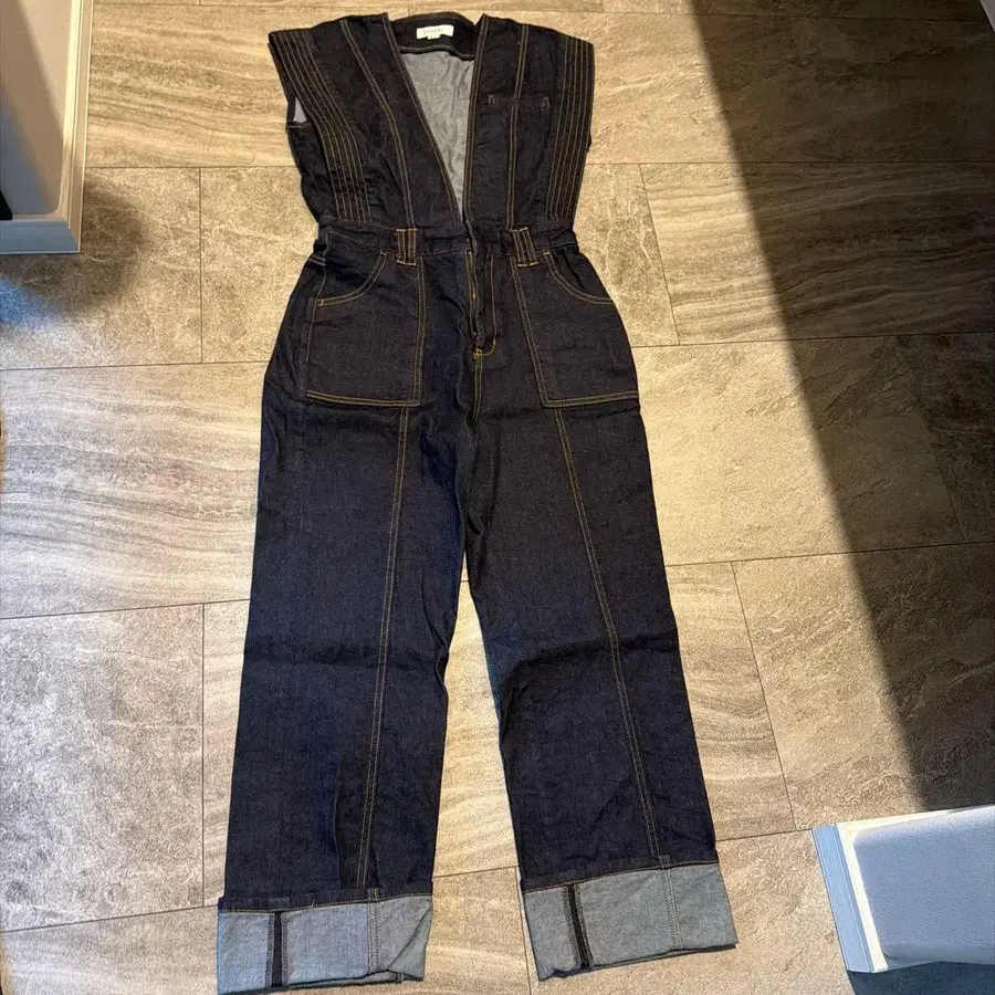 AMERI 인디고 데님 점프 수트 S