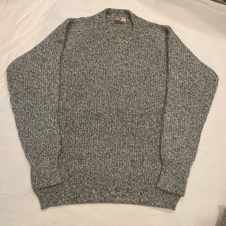 60s 70s 스위스산 크루넥 니트 로우 게이지 모노톤 멜란지 M L