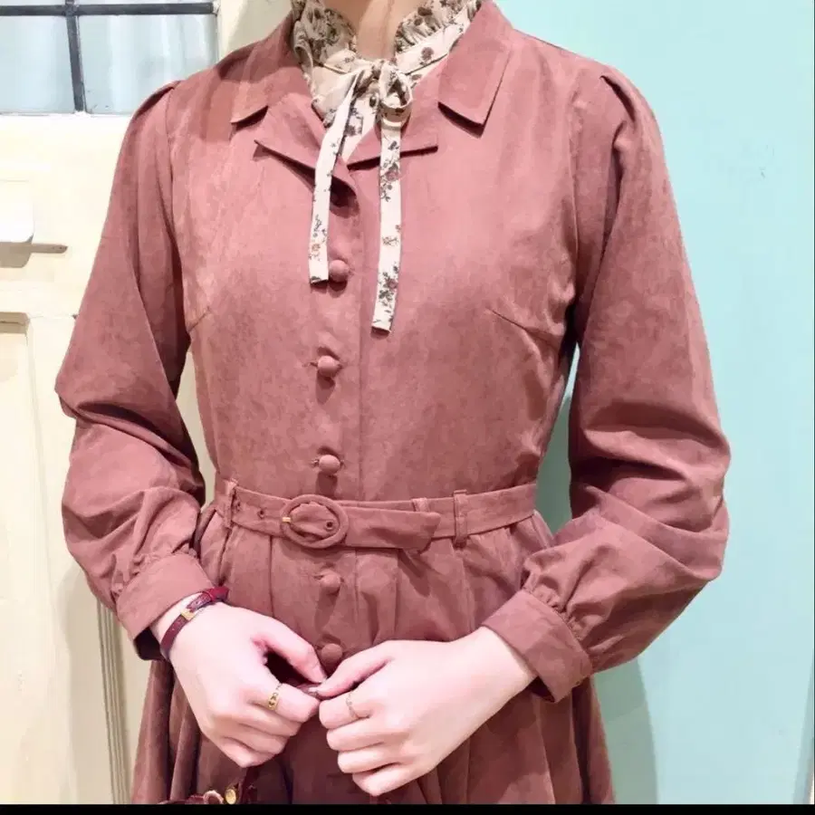 프론트 단추 오픈 카라 긴팔 원피스/an another angelus