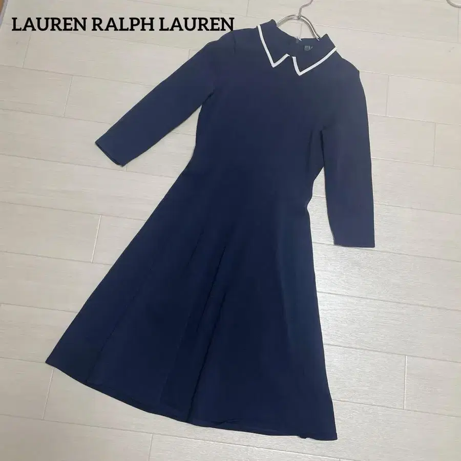 로렌 랄프 로렌 무릎 기장 원피스 7분 소매 작은 사이즈 네이비