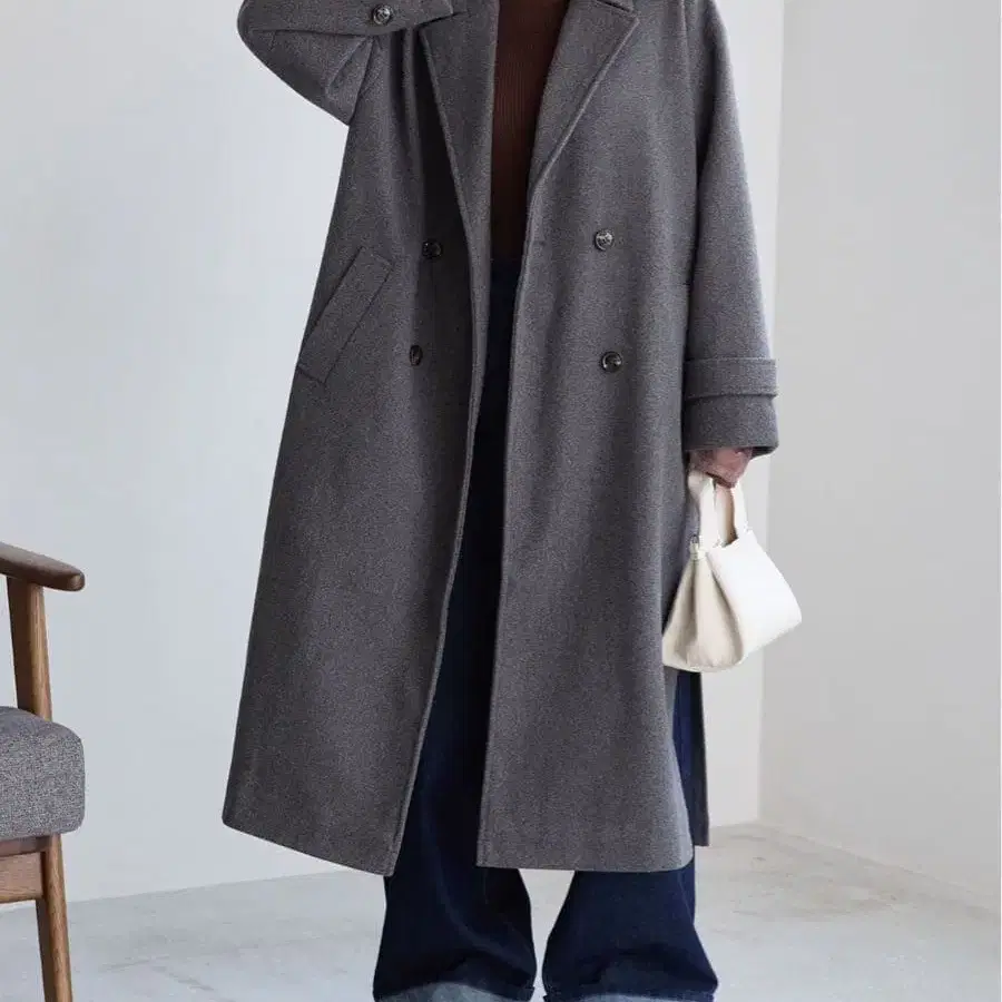니트 멜톤 사이드 슬릿 롱 체스터 코트