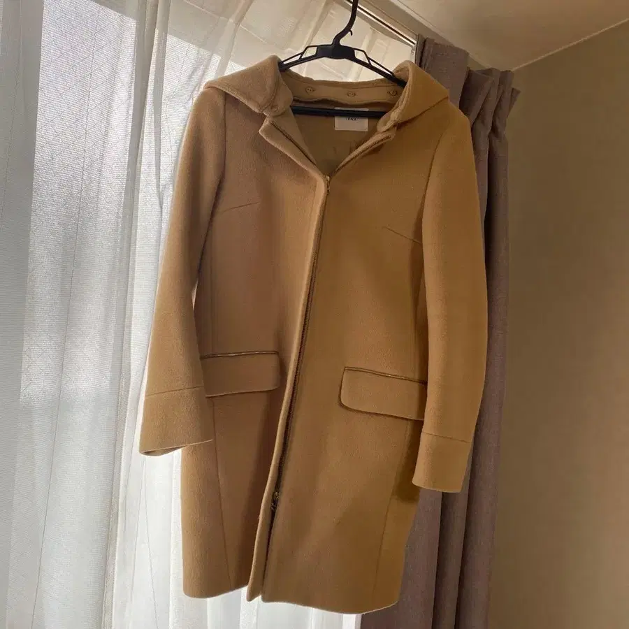 IENA 베이지 후드 부착 체스터 코트