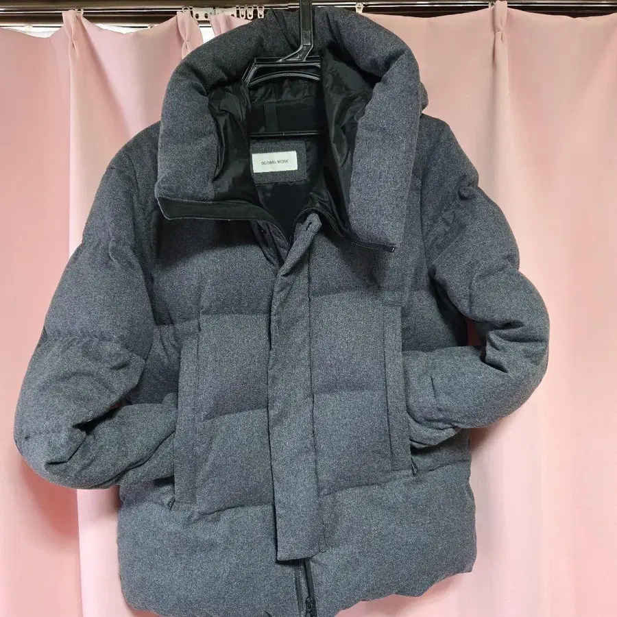 GLOBAL WORK 그레이 다운 자켓 후드 부착